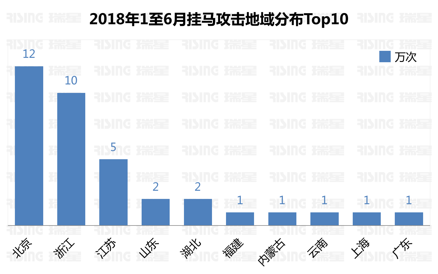 2018年3月,其次是浙江省受挂马10万次。其次是浙江省36万个,